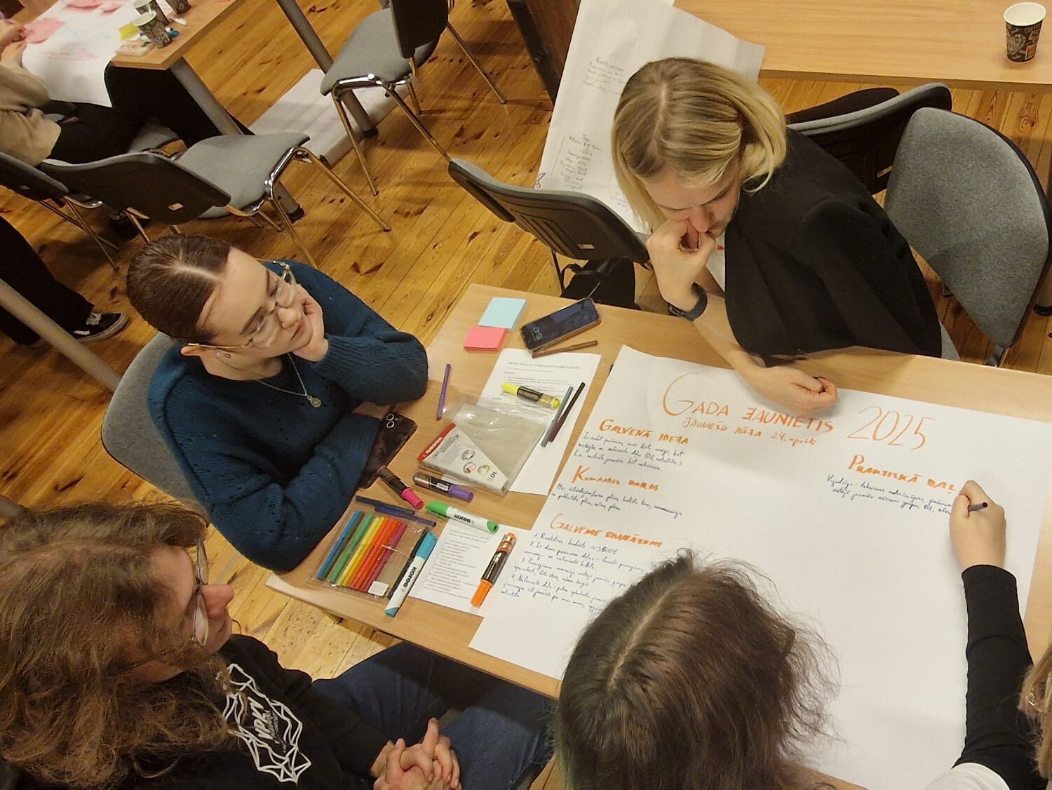 Nodarbības centrālais uzdevums bija izstrādāt jaunu “Gada jaunietis 2025” pasākuma koncepciju. Jaunieši tika sadalīti trīs komandās: