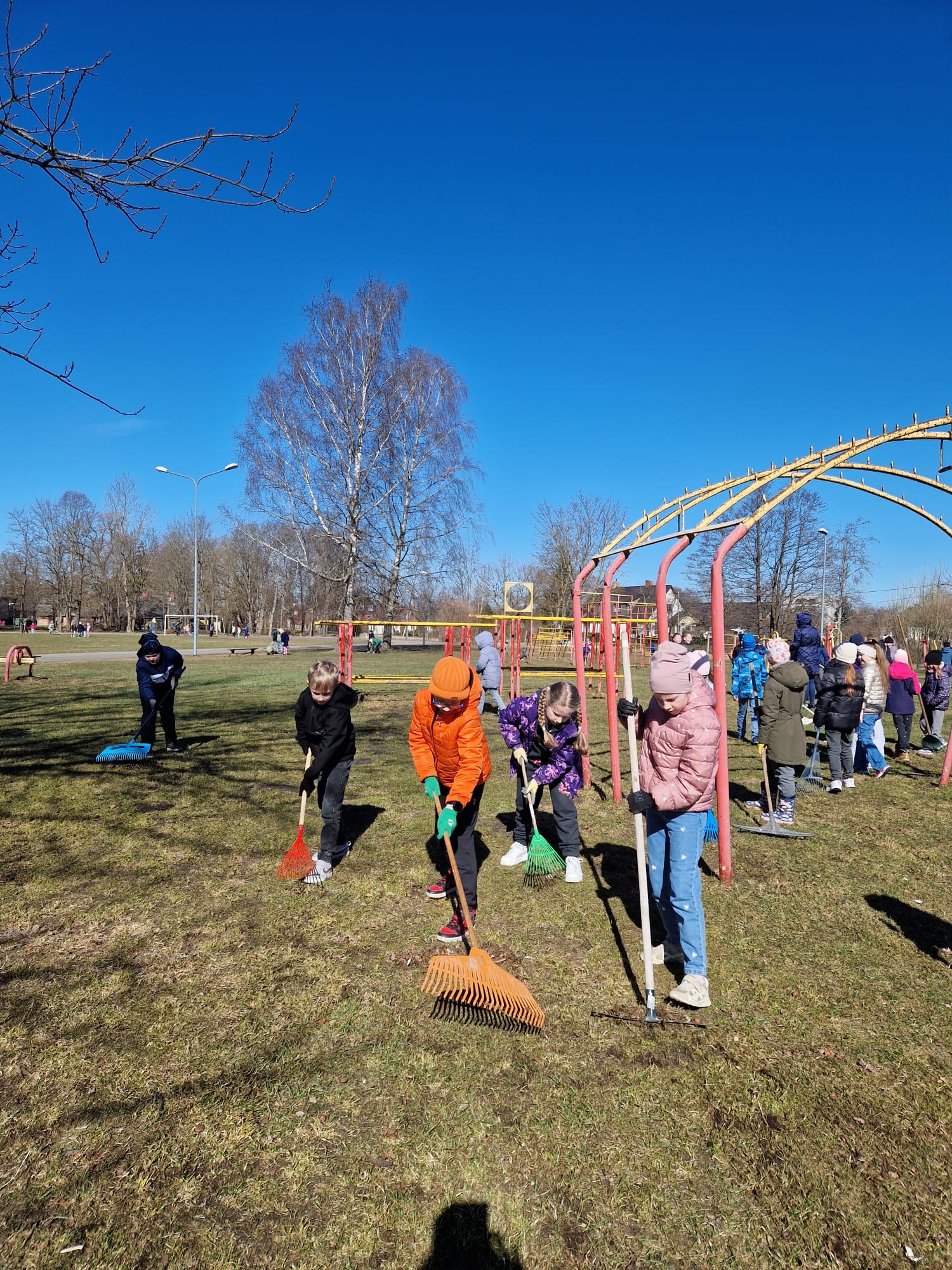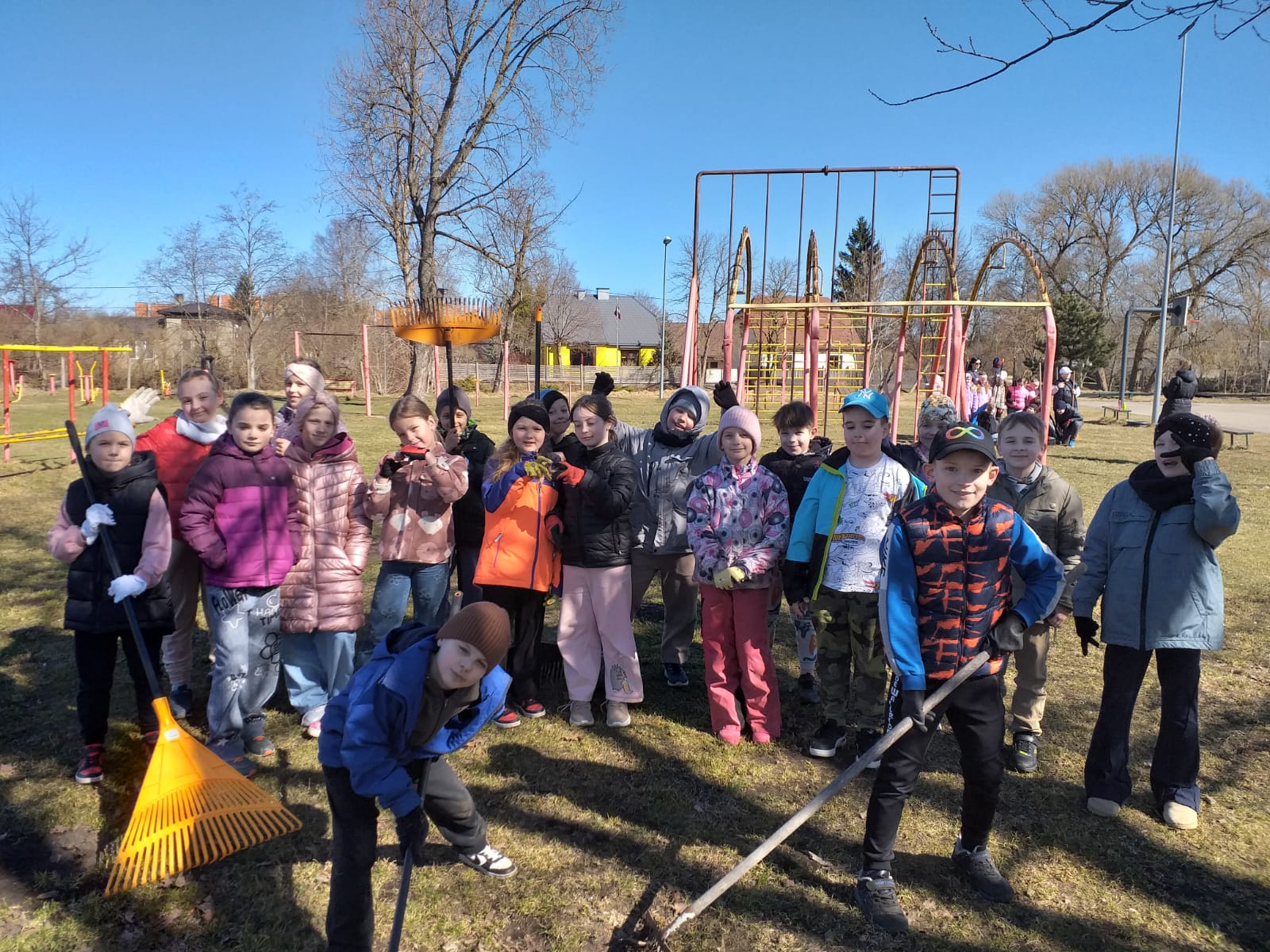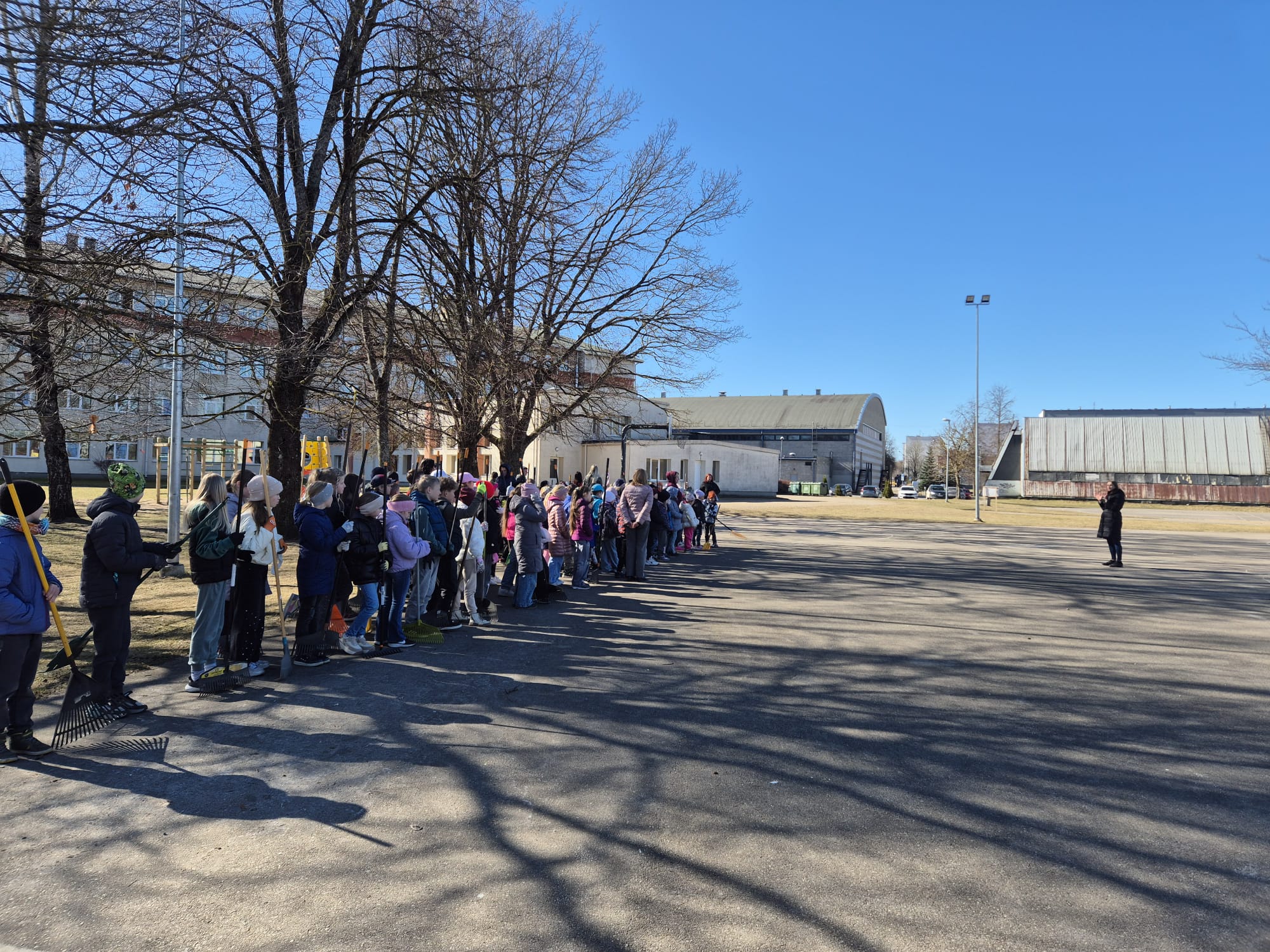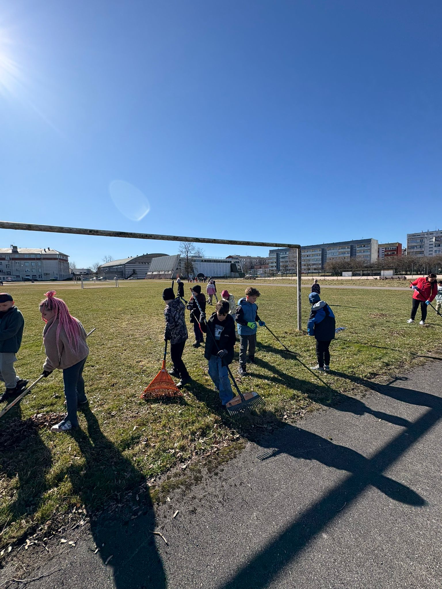 Šoreiz galvenā uzmanība tika pievērsta skolas stadionam. Bruņojušies ar grābekļiem, cimdiem un lielu apņēmību, skolēni rūpīgi savāca pērnās lapas un zarus, lai sporta nodarbības un brīvā laika aktivitātes ārā būtu vēl patīkamākas.