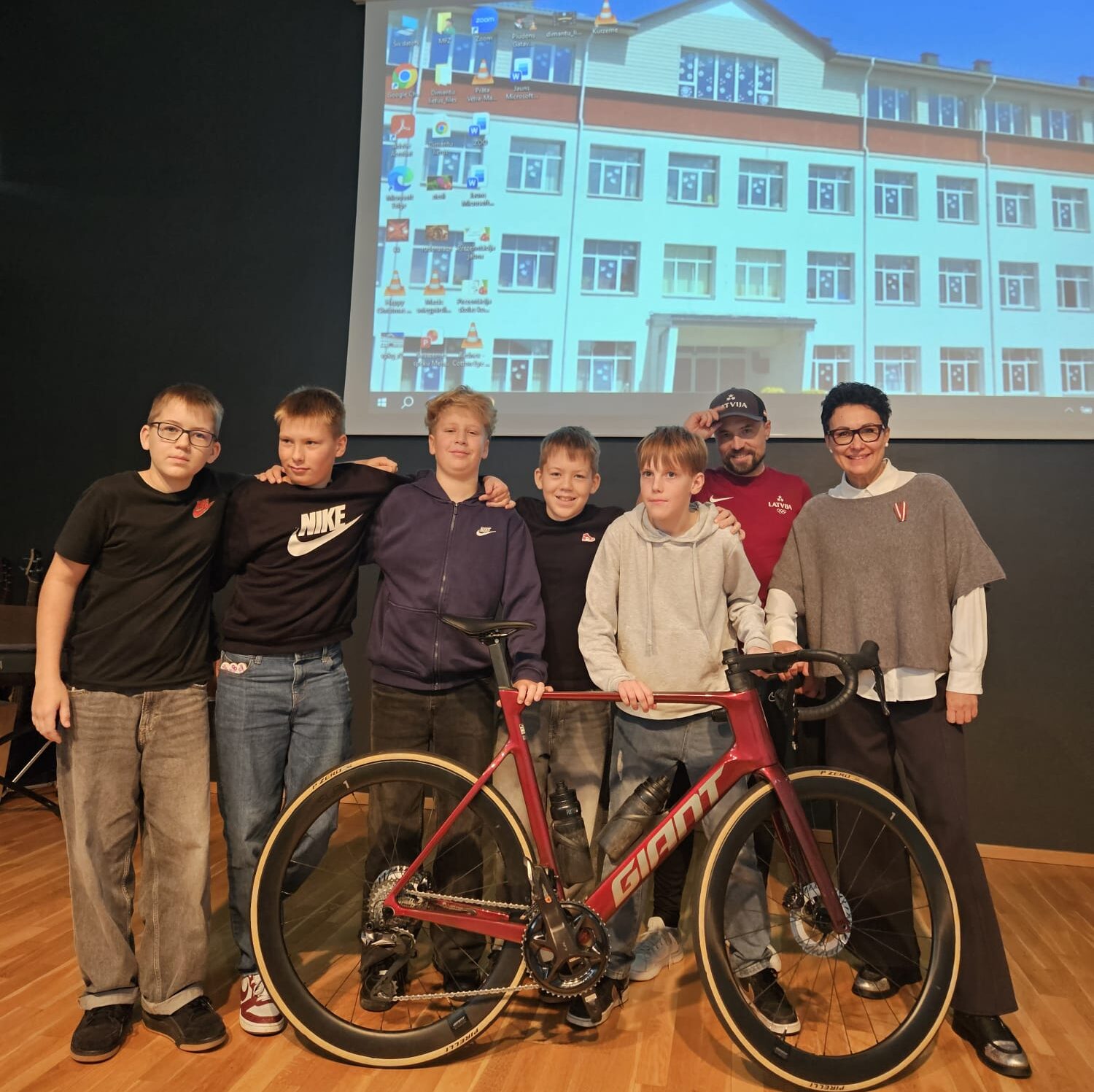 Viesis uz skolu bija atvedis savu velosipēdu un ekipējumu, kas skolēniem ļāva tuvāk iepazīt riteņbraukšanas sporta pasauli. Viesturs dalījās stāstā par savu ceļu sportā – kā sākās viņa aizraušanās ar riteņbraukšanu, kādi izaicinājumi un panākumi bijuši karjeras laikā.