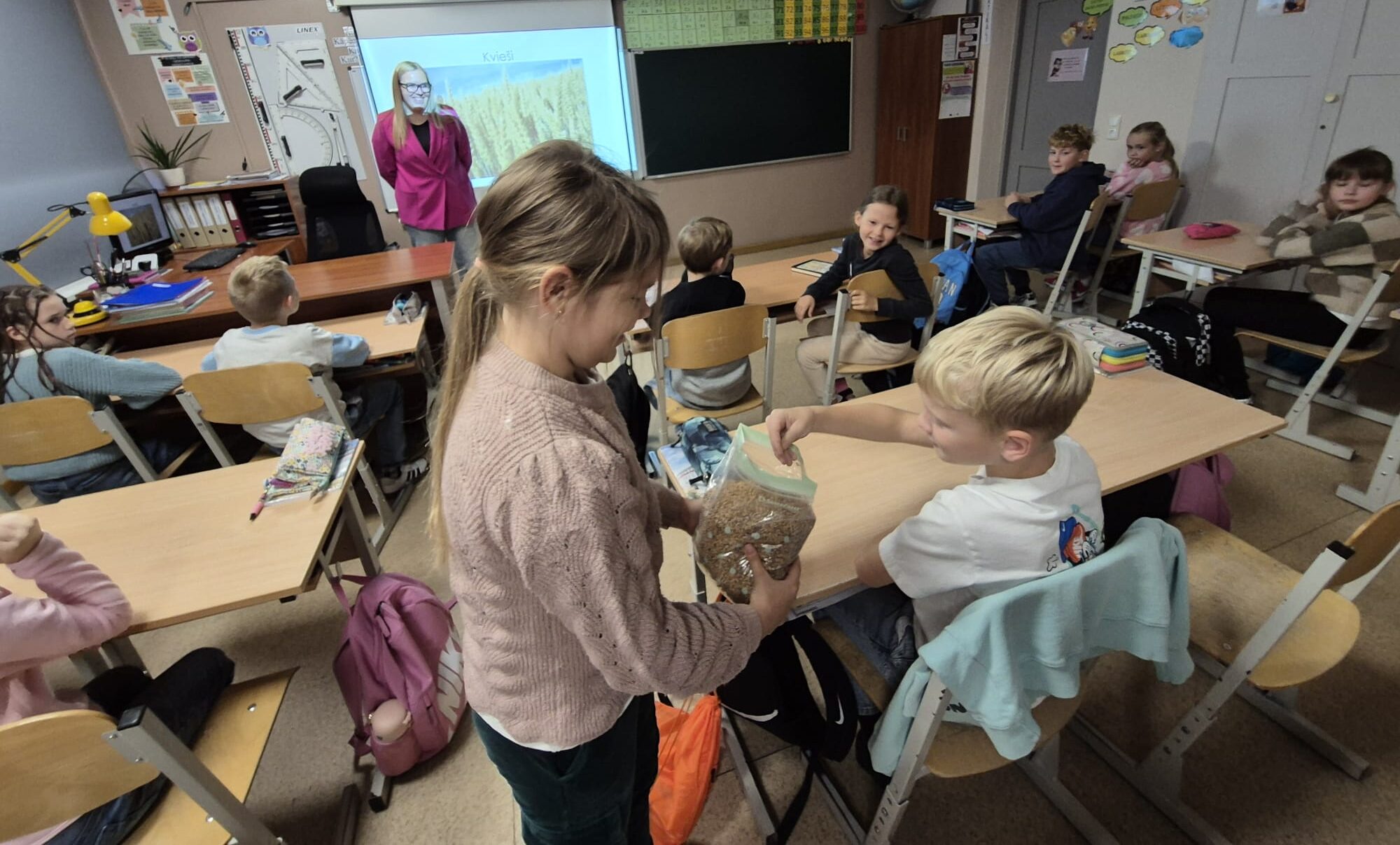 8.oktobrī 3.a klasē viesojās Elizabetes mamma – Ilze Rungēvica, kura pastāstīja par agronoma profesiju. Skolēni uzzināja, kā ir saimniekot zemnieku saimniecībā, kurā specializējas viengadīgo kultūraugu, graudaugu, pākšaugu un eļļas augu sēklu audzēšanā. Skolēniem bija iespēja noteikt graudu veidus, uzdot sev interesējošus jautājumus par darba procesu, lauksaimniecības tehniku, kādi ir izaicinājumi ikdienā.