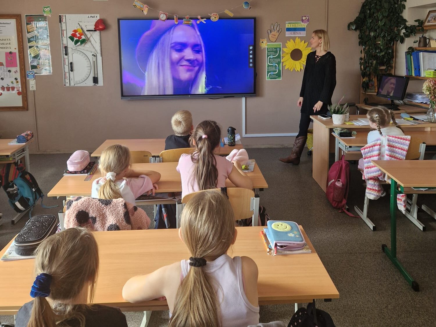 7. oktobrī 2.a klasē viesojās Lizetes mamma – mūziķe un mūzikas pedagoģe Iluta Alsberga. Skolēni tika iepazīstināti ar mūziķa profesiju. Uzzinājām, ka Lizetes mamma komponē dziesmas, ar savu mūziku ir piedalījusies “X Faktorā” un “Supernovā”, kā arī ir bekvokāliste daudziem Latvijā zināmiem mūziķiem. Kuldīgā viņai ir sava mūzikas studija, kur dziedāt var iemācīties gan bērni, gan pieaugušie.