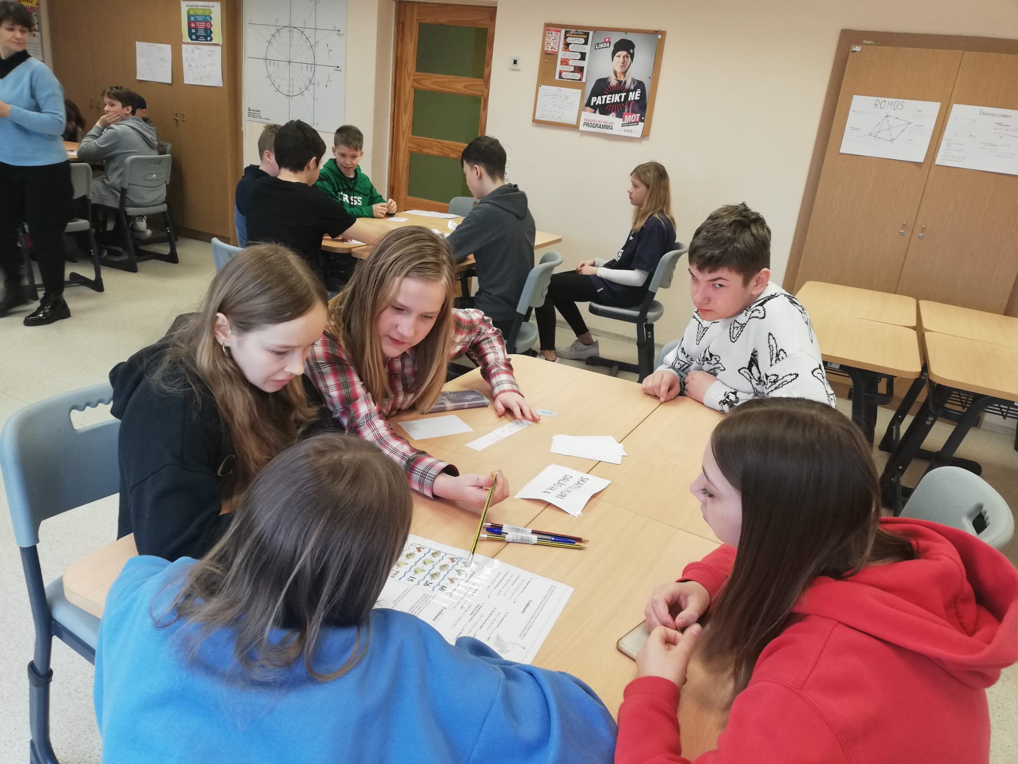 Projektu dienā “Zaļās ceturtdienas kokteilis” matemātikas un datorikas skolotāji bija sagatavojuši dažādus netradicionālus uzdevumus astoņās stacijās. Skolēni uzdevumus veica gan individuāli, gan grupās, nostiprinot ikdienas darbā gūtās prasmes un iemaņas.
