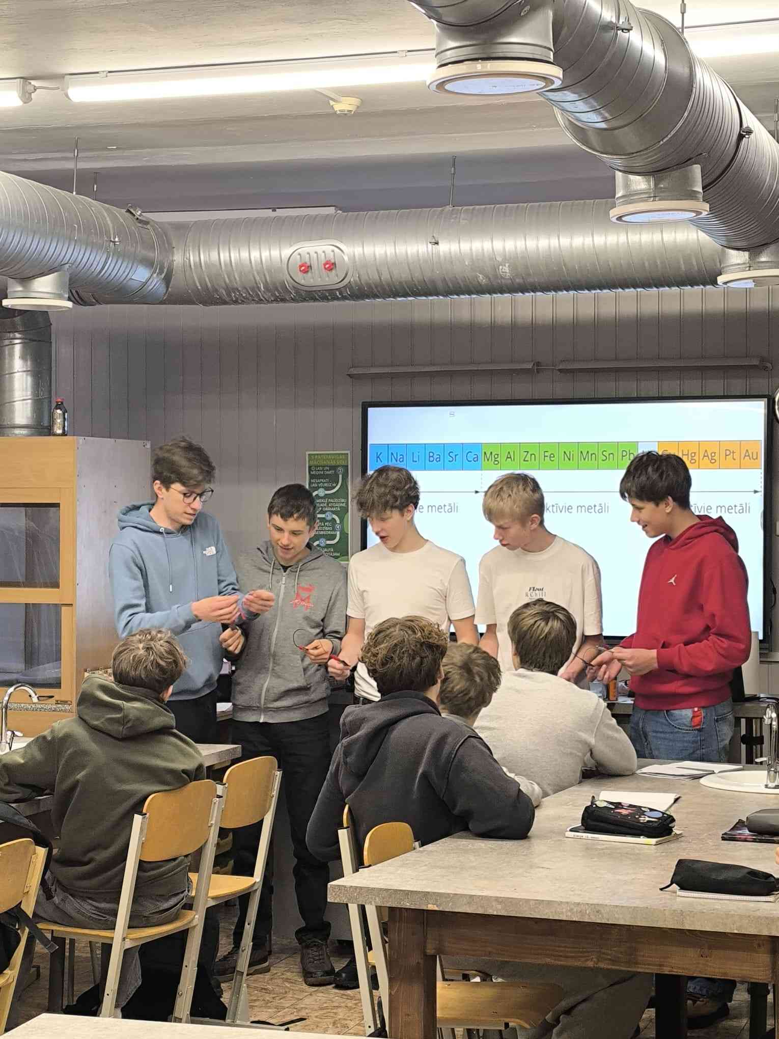 8. klase – “Skābes, bāzes un sāļi”. Skolēni atzina, ka nodarbība bija ļoti interesanta un saistoša, kā arī sniedza iespēju apgūt tēmu mūsdienīgā un saprotamā veidā. Šāds mācību formāts veicina interesi par ķīmiju un motivē piedalīties līdzīgās nodarbībās arī nākotnē.