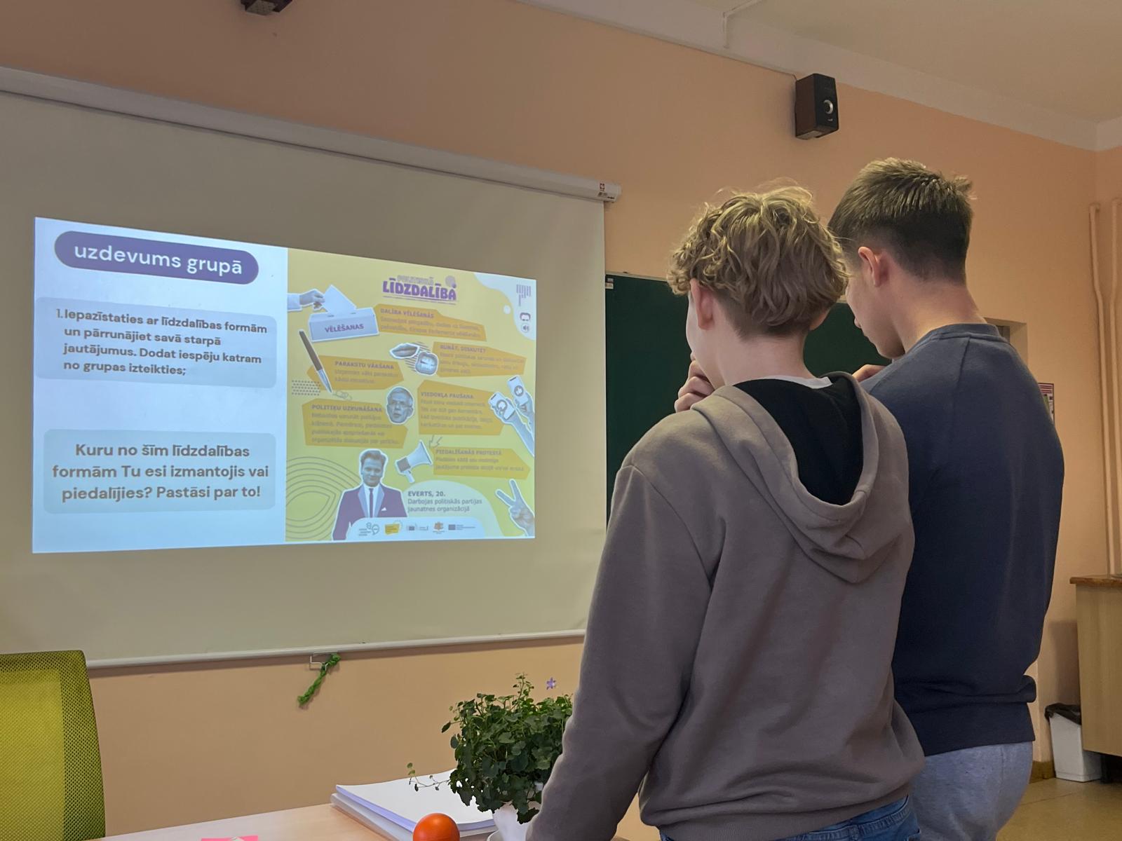 Skolēni apsprieda dažādus līdzdalības veidus un izvērtēja, kuri no tiem visefektīvāk palīdz ietekmēt lēmumus skolā un vietējā kopienā. Nodarbība veicināja atbildīgu attieksmi, kritisko domāšanu un izpratni par pilsonisko līdzdalību ikdienas situācijās, īstenojot pilsoniskās līdzdalības caurviju prasmi.