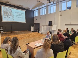 Karjeras konsultante Guntra Krūkliņa un skolotāja Inga Liepiņa dalījās pieredzē par skolēnu caurviju prasmju apguvi un attīstīšanu, iesaistot jauniešus nākotnes mērķu izvērtēšanā. Skolotājas prezentēja četru mācību stundu aktivitātes, piemēram, informācijas analīzi un SVID analīzi, kā arī karjeras plāna veidošanu. G. Krūkliņa un I. Liepiņa uzsvēra sadarbības nozīmi ar dažādiem atbalsta sniedzējiem un ieteica, kam pievērst uzmanību karjeras izvēlē. Tika skaidroti karjeras plāna veidošanas mērķi un soļi, kā arī prasmes, kas tajā apgūstamas.