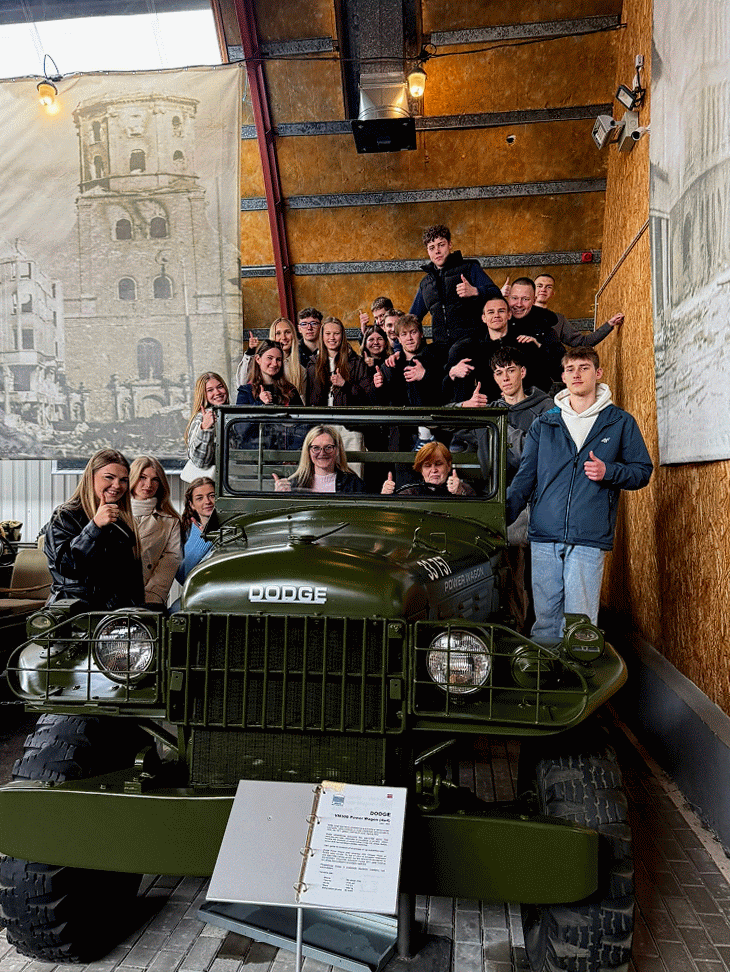 Pirmā pietura bija Bauskas Motormuzejs, kur skolēni piedalījās muzejpedagoģiskajā nodarbībā “Stāsti, spēkrati, personības” (programmas “Latvijas skolas soma” ietvaros). Skolēni iepazinās ar tehnikas attīstības vēsturi, apskatīja dažādus spēkratus un uzzināja daudz interesanta par transporta līdzekļu attīstību Latvijā un pasaulē. Īpašu interesi raisīja senie automobiļi un motocikli.