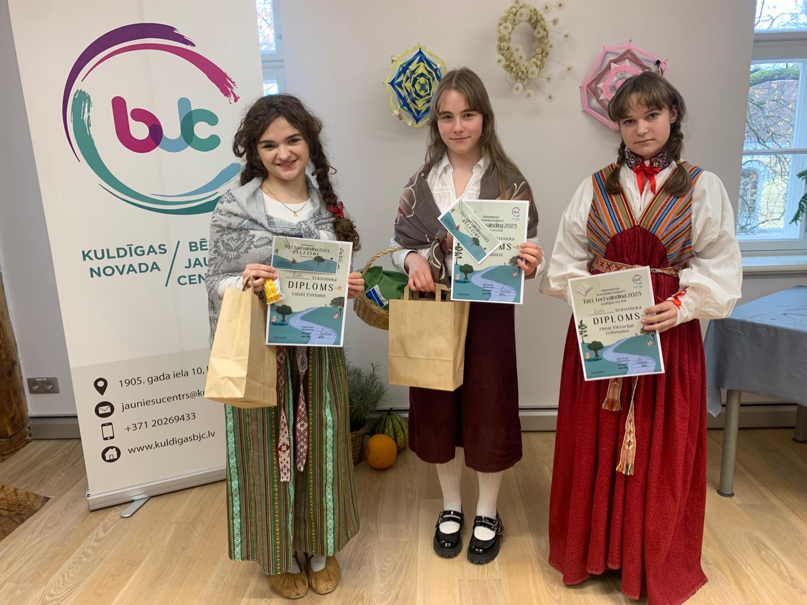 5. novembrī mūsu skolas skolnieces Keita Gailīte (7.a), Luīze Zvirbule un Alma Viktorija Zeikmane (7.c) piedalījās Kuldīgas BJC rīkotajā Stāstnieku konkursa “Teci, teci, valodiņa!” pusfinālā. Meitenes apliecināja savas prasmes stāstīt latviešu tautas pasakas, dzīves atgadījumus un anekdotes.