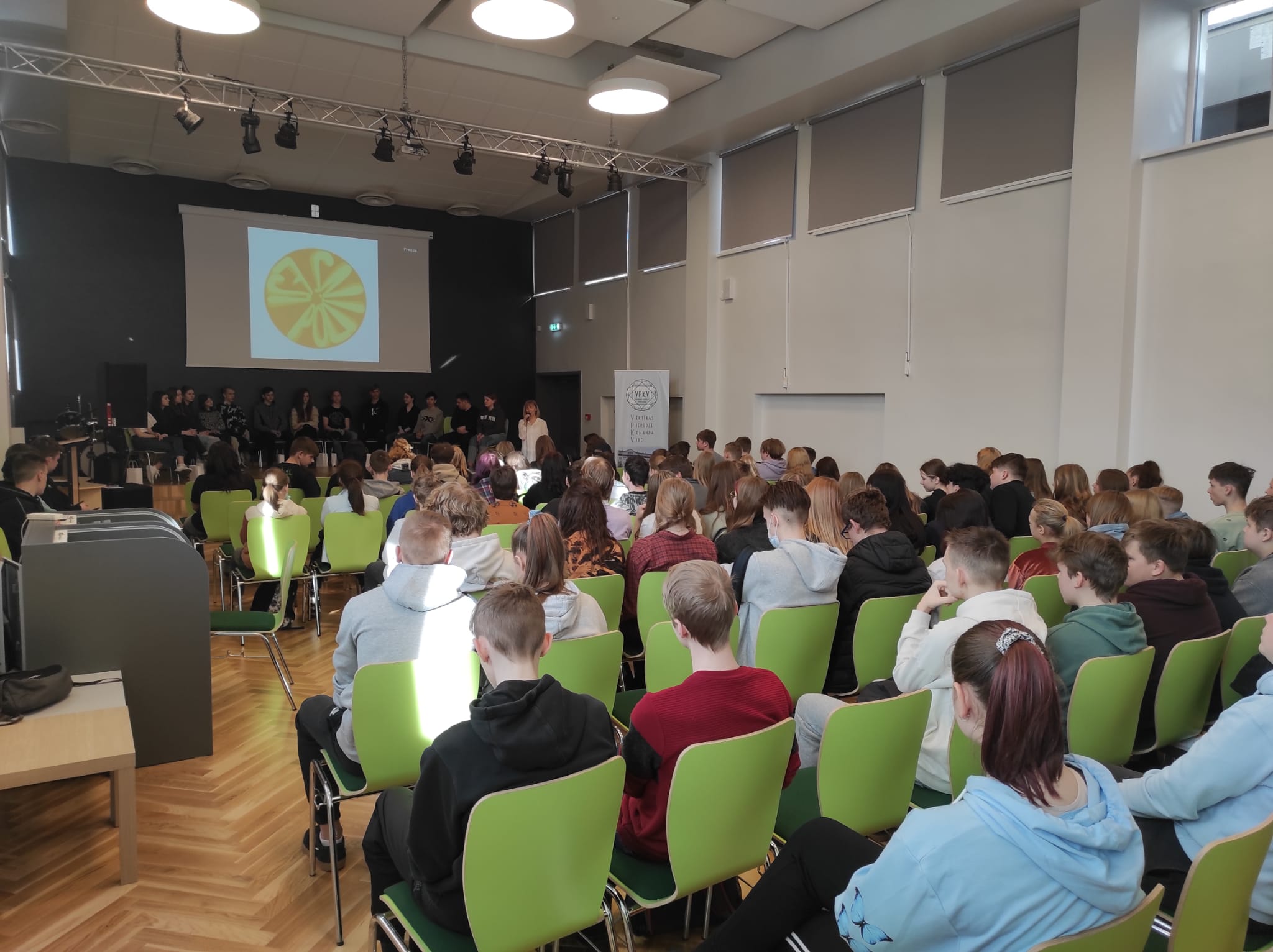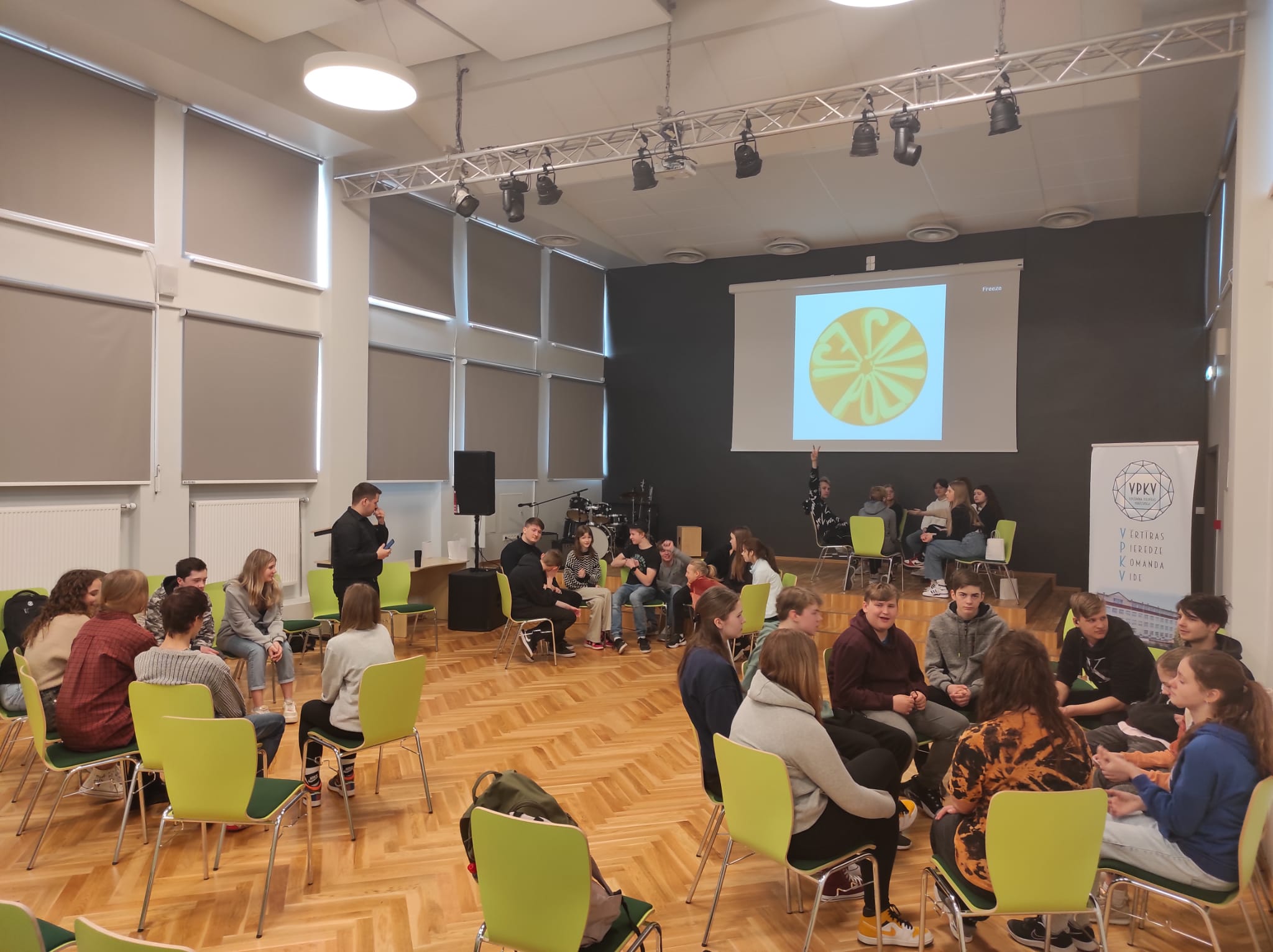 1.aprīlī V.Plūdoņa Kuldīgas vidusskolas zālē bija pulcējušies VPKV skolēni un projekta dalībnieki, lai pastāstītu saviem vienaudžiem par projektā piedzīvoto, dalītos pieredzes stāstos, par gūto neformālajās apmācībās un aicinātu pievienoties plānotajām projekta norisēm turpmāk. Bija iespēja vērot gan neformālo aktivitāšu video un foto galeriju, gan diskutēt par to, kā pozicionēt sevi uz pozitīvo, gan interesentiem tika sniegta individuāla konsultācija par rīkiem, ieteikumiem, kas ikdienā palīdz izvēlēties būt pozitīvam!