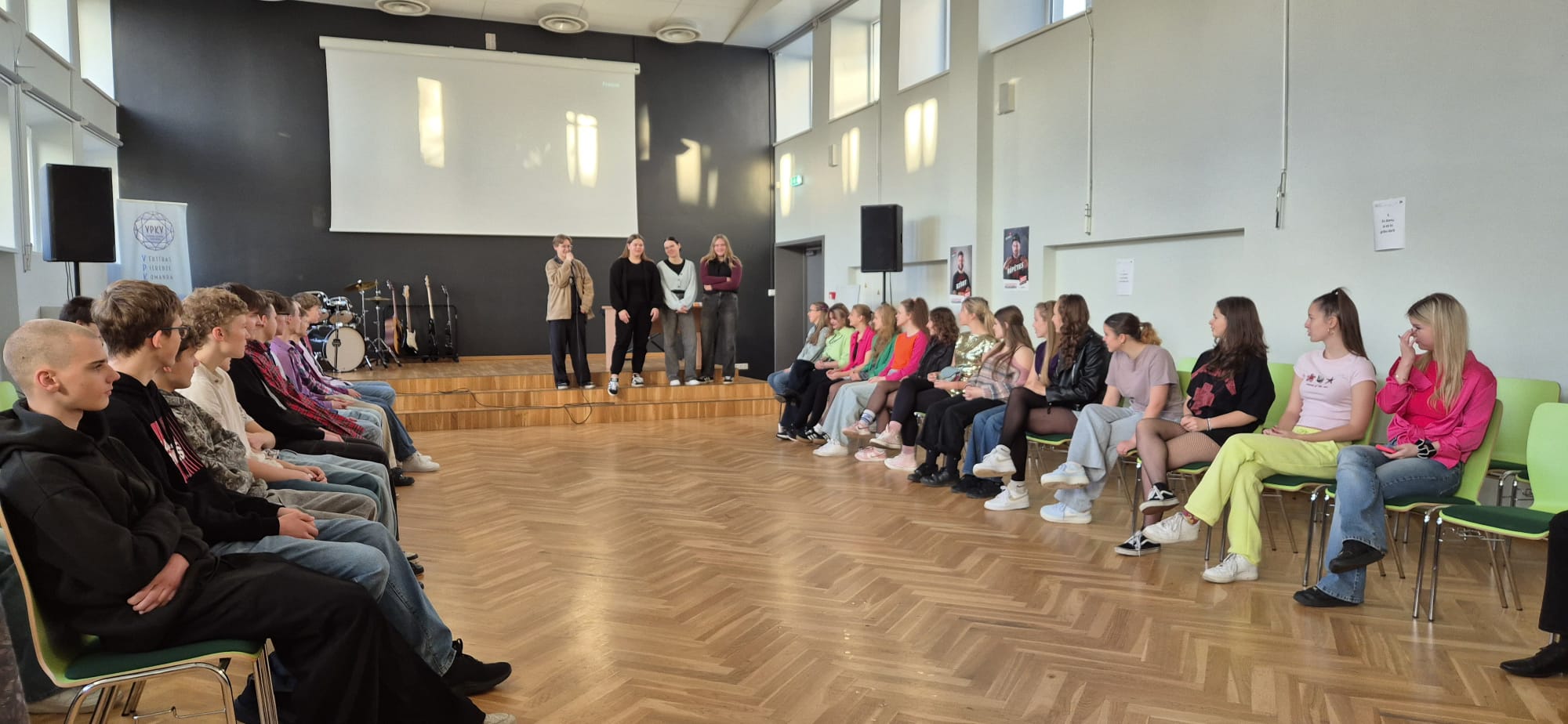 Saulainā rudens dienā skolu piepildīja īpaša rosība un spilgtas krāsas – 10. klašu skolēni bija pārtapuši par īstiem 80. gadu stila ikonām, lai piedalītos savās iesvētībās ar devīzi “Stilīgi. Drosmīgi. Unikāli.”