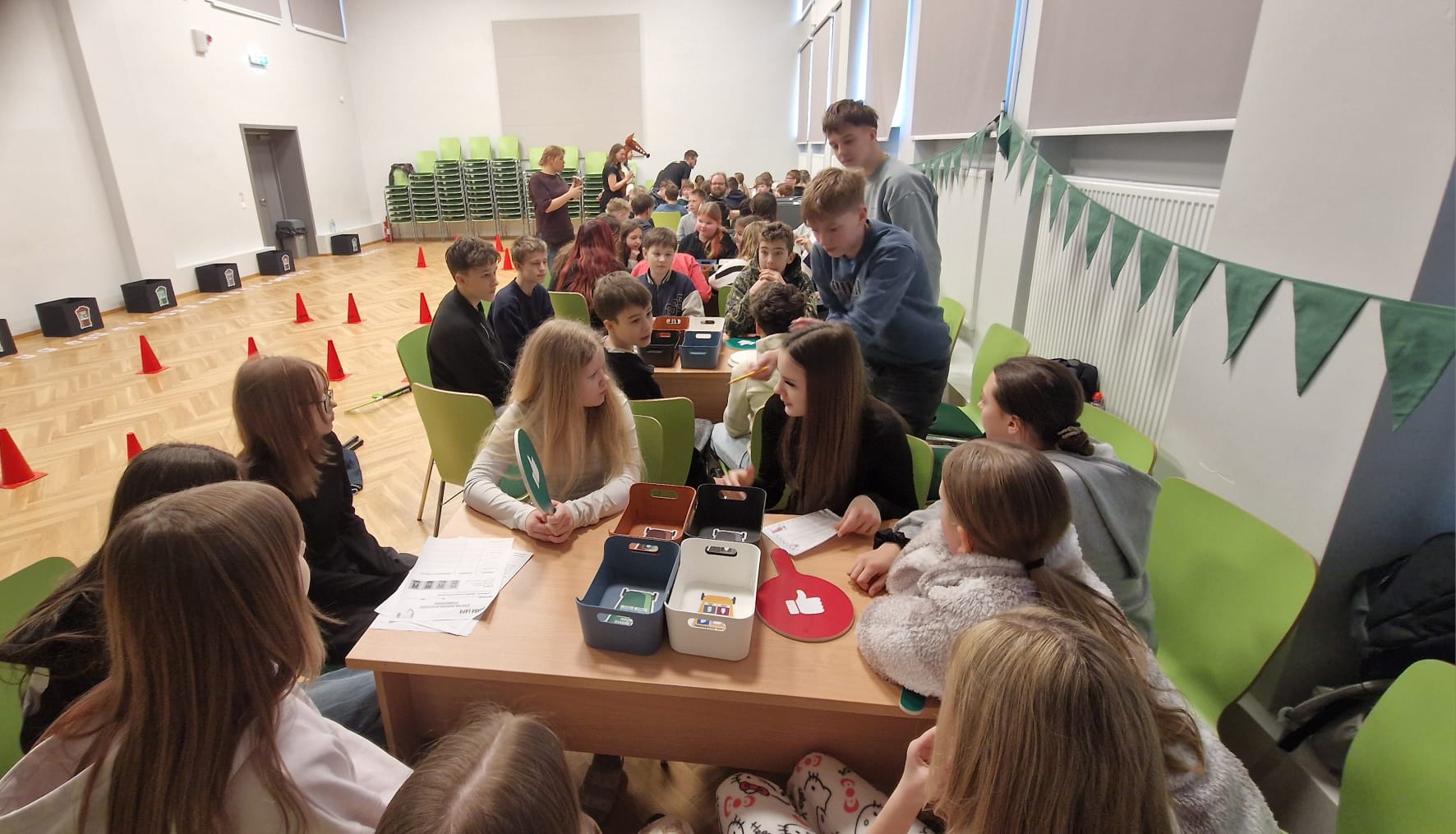 Pasākuma laikā valdīja pozitīva un enerģiska gaisotne – skolas zāli piepildīja prieks, azarts un savstarpējs atbalsts. Skolēni aktīvi iesaistījās aktivitātēs un palīdzēja viens otram.