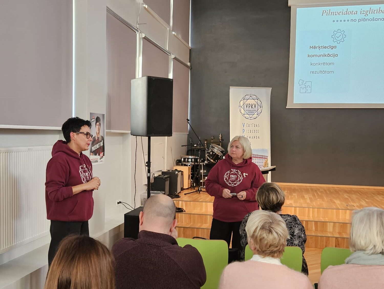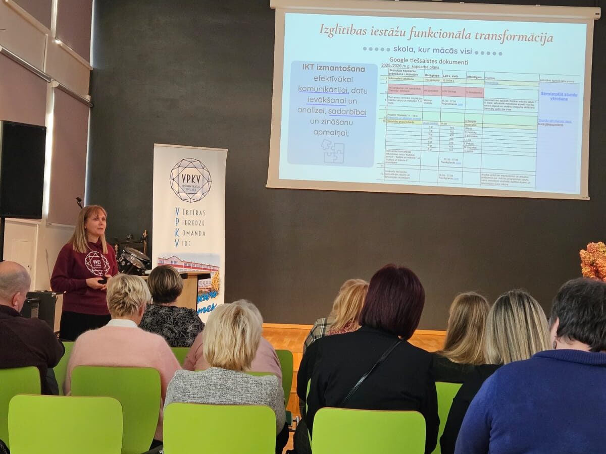 7. novembrī mūsu skolā viesojās Jelgavas novada izglītības iestāžu vadītāji, lai iepazītos ar V.Plūdoņa Kuldīgas vidusskolas vadības komandas darbu – no idejas līdz rezultātam. Vizītes laikā ieskicējām galvenos skolas attīstības virzienus, dalījāmies pieredzē par mērķtiecīgu komandas darbu un pārmaiņu ieviešanas procesu.